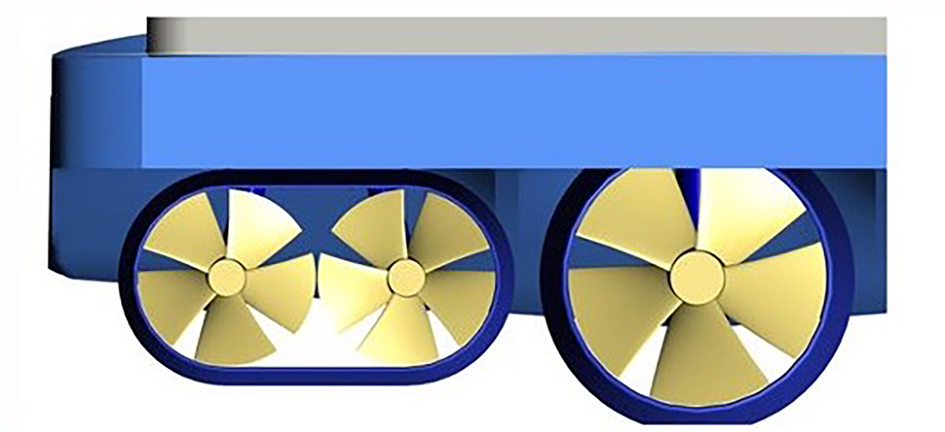Our second product – also for the reduction of CO2 emissions – is an innovative marine propulsion system. Our goal: a quarter less draught with improved efficiency at the same time. This enables ships to navigate even in shallow waters, saving fuel and emitting less CO2.